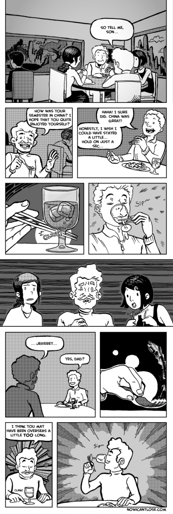 Based off of a true story. Kind of, anyway. When I got back from China, I was so used to using chopsticks, that I had trouble acclimating back to using a fork. Eventually I got used to it again, but[…]↓ Read the rest of this entry…