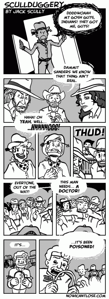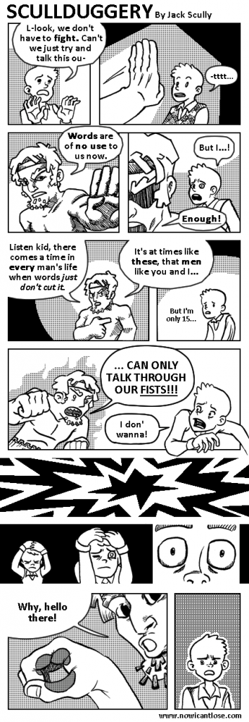 Since my school newspaper postponed last week’s comic until this week, I decided to revisit an older comic for this site. The original Scullduggery 9 was published in May of 2009, so I like to think I’ve come a long[…]↓ Read the rest of this entry…