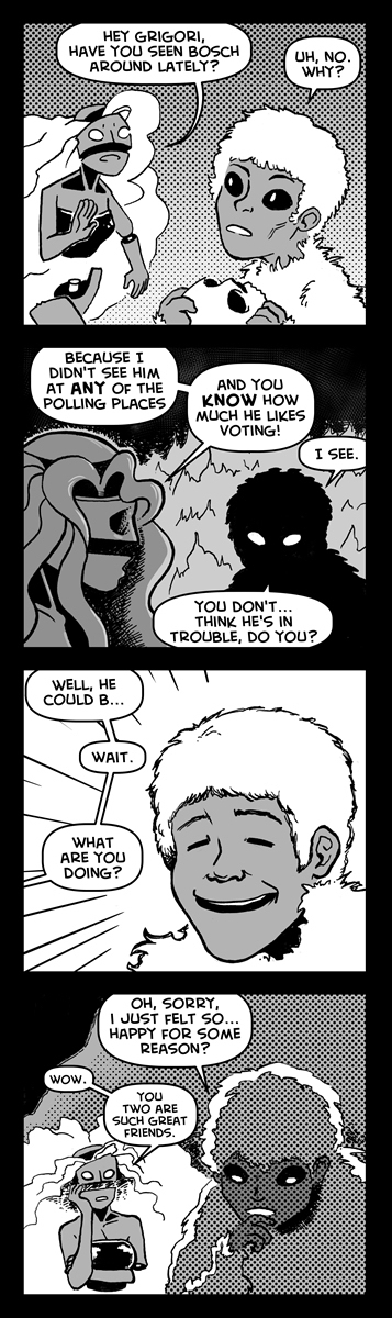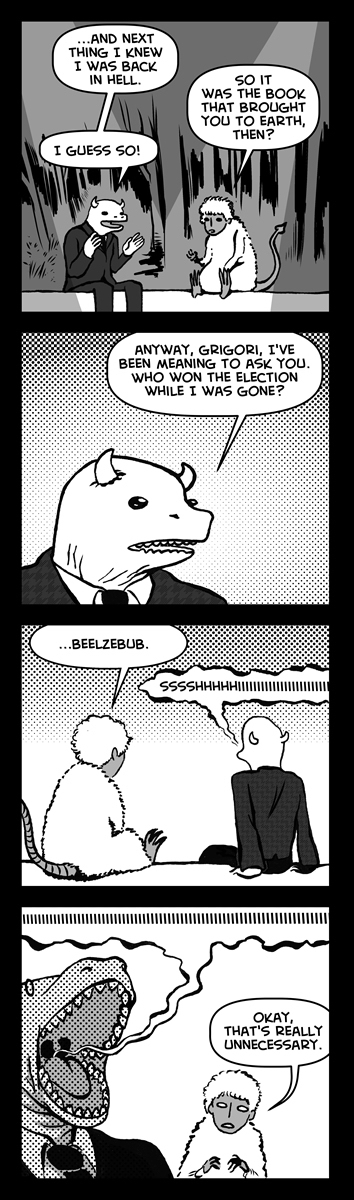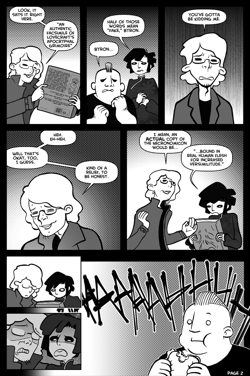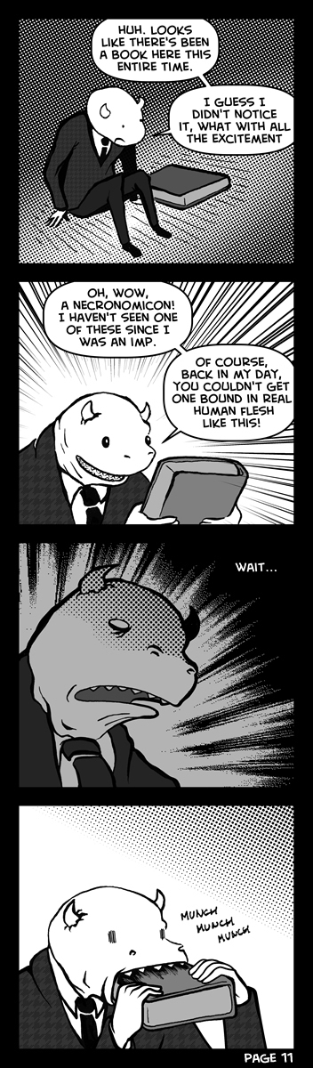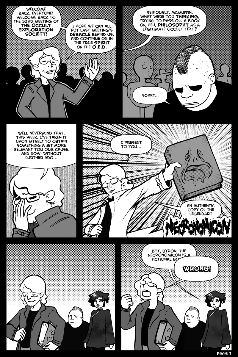 Necronomicon Oct31 by Jack Scully on October 31, 2016 at 9:24 pm Chapter: NecronomiconCharacters: Bosch, Grigori, Occult Exploration Society, Salmacis └ Tags: halloween, hell, long, necronomicon, occult exploration society