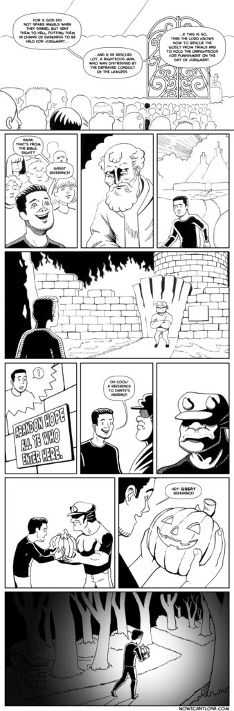 Happy Halloween! Here’s a two page comic to celebrate! And here are a few links to the “references” in the comic. 2 Peter 2 1-22 Abandon Hope All Ye Who Enter Here Jack o’Lantern Irish Folktale …and in other news,[…]↓ Read the rest of this entry…