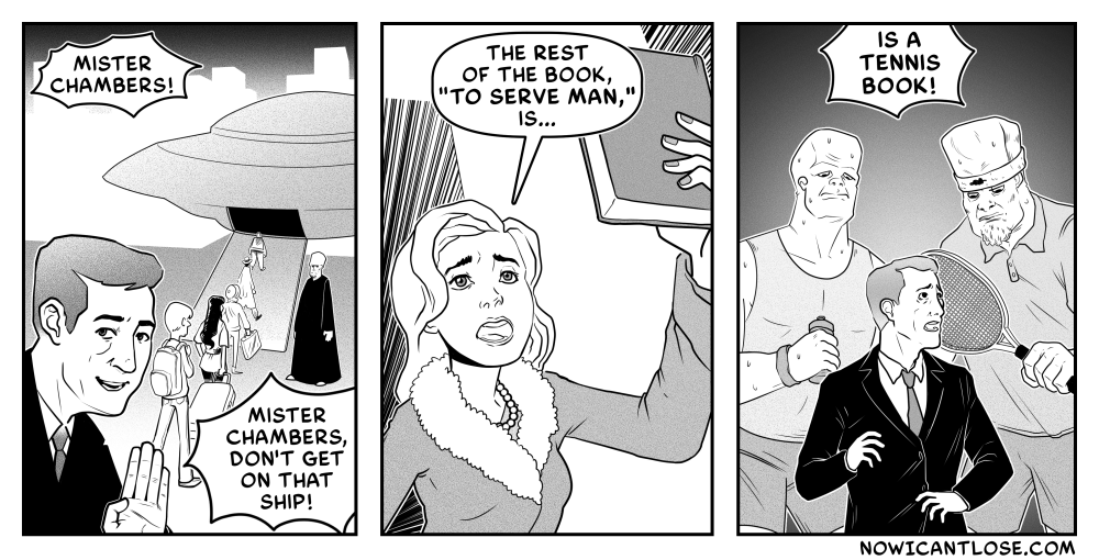 Unnumbered #76 Oct05 by Jack Scully on October 5, 2016 at 11:00 am Chapter: Comic To Serve Man └ Tags: 76, tennis, the twilight zone, unnumbered Comment