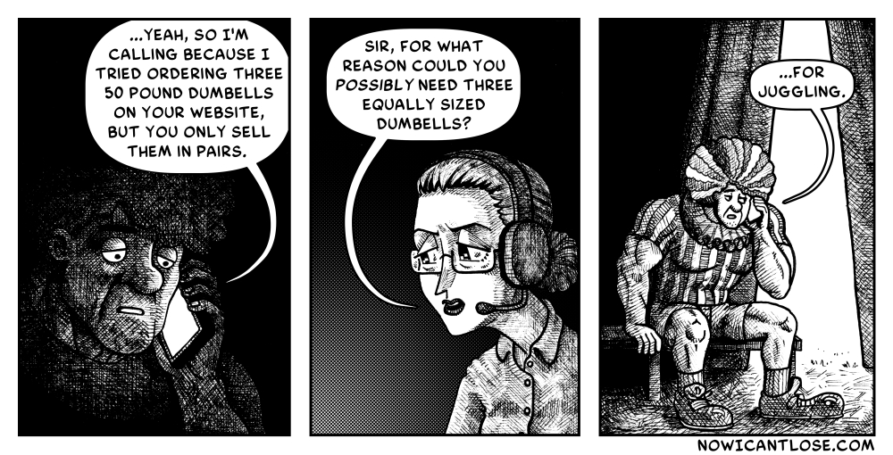 Originally I planned this one as a single panel comic, but, halfway through the penciling phase, I decided I liked it better as a three panel comic. Much nicer than discovering this during the inking phase!