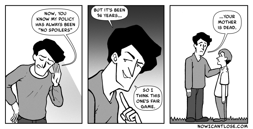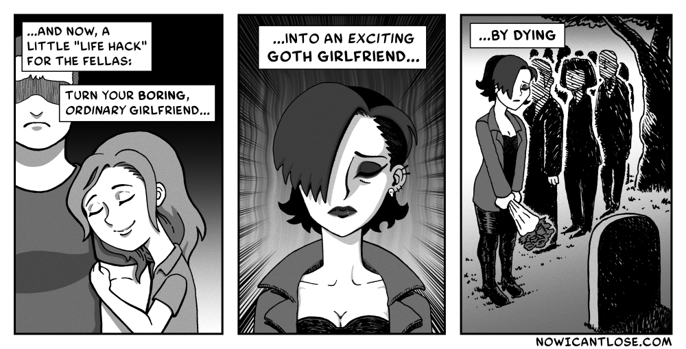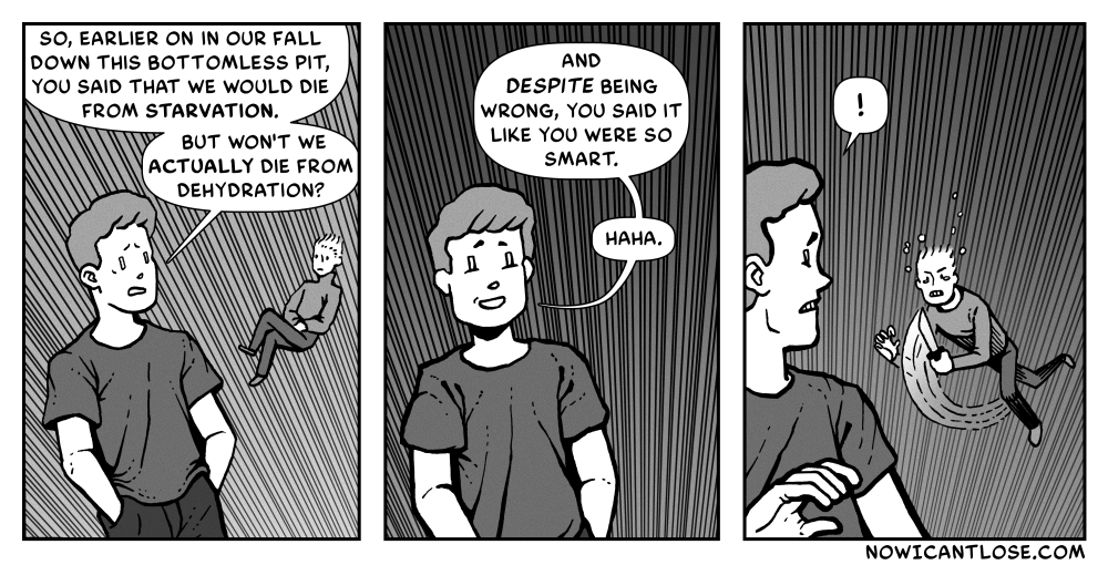 I feel like I use this kind of scenario a lot. I probably won’t stop. Anyway, this scene was the inspiration for today’s comic: Can’t get enough of this kind of thing? For more comics like this one >>Click Here<<