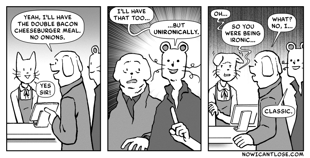 Ah, irony. There was a time where people would do and say things ironically. People would even enjoy things ironically. It was fun for a while, but eventually it started to wear thin. The new thing is sincerity, but some[…]↓ Read the rest of this entry…
