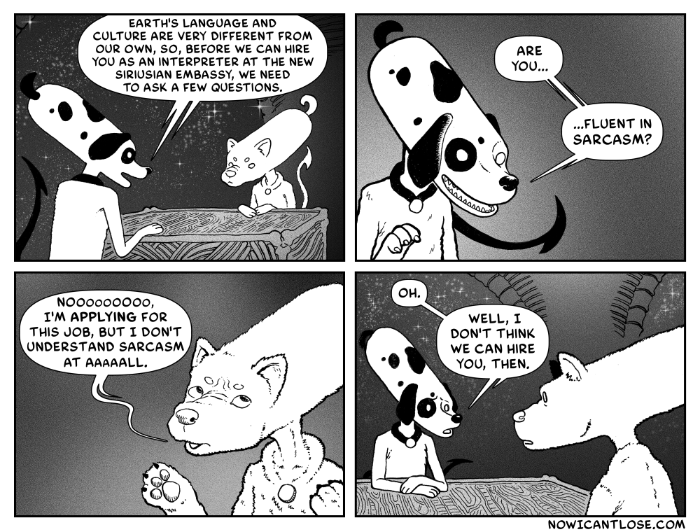 Etymologically speaking, dogs are sardonic. What are Sirusians anyway? Well, they’re residents of the Canis Majora star system, meaning they live on a planet orbiting the star commonly known as Sirius! Want to know more? Well actually I made them[…]↓ Read the rest of this entry…