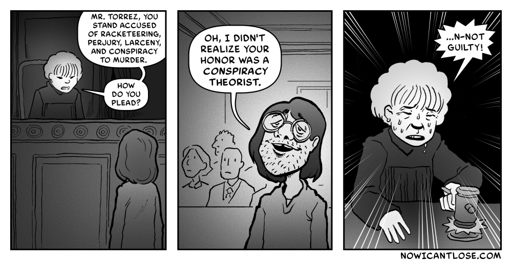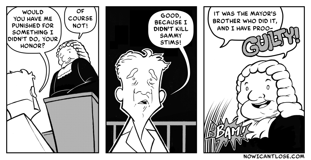 Middle of July now. Bet you thought it was still June. Sorry, but it’s not. Want more comics set in a courtroom? I’ve got a bunch of those. Not really sure why, because I rarely participate in the legal system.[…]↓ Read the rest of this entry…