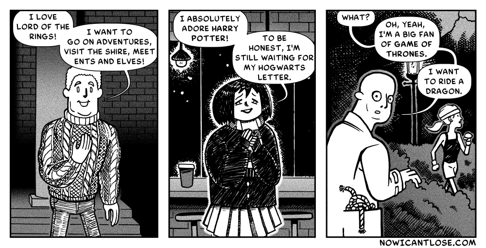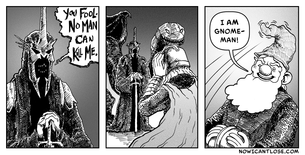 There was a trend quite a few years ago where people would make edgy Garfield parodies. Some people are still making them. Personally, I think the novelty has worn off. Want more comics that reference the works of JRR Tolkien?[…]↓ Read the rest of this entry…