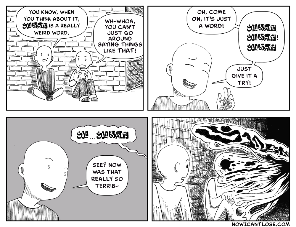 I’m not sure if including “snake-hair” gag is worth obfuscating the actual joke. I’m probably going to have to redraw the final panel ;_; See you next week. *edit* I accidentally gave this comic yellow borders. I’m running f.lux on[…]↓ Read the rest of this entry…