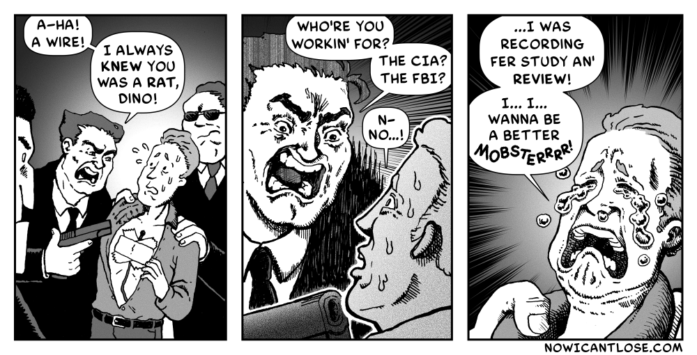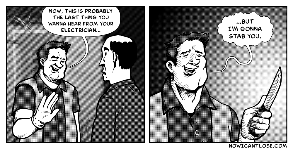 I feel like I use this kind of scenario a lot. I probably won’t stop. Anyway, this scene was the inspiration for today’s comic: Can’t get enough of this kind of thing? For more comics like this one >>Click Here<<