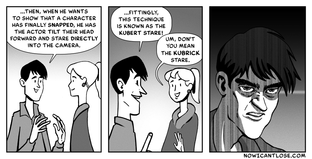 Originally I planned this one as a single panel comic, but, halfway through the penciling phase, I decided I liked it better as a three panel comic. Much nicer than discovering this during the inking phase!
