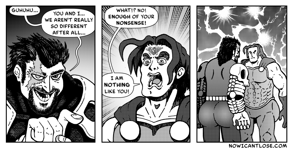We did it! We broke superhero comics down to its bare essentials! In other news, I added color to Scullduggery 186 I have been updating older comics on a fairly regular basis recently. If you want to make sure you[…]↓ Read the rest of this entry…